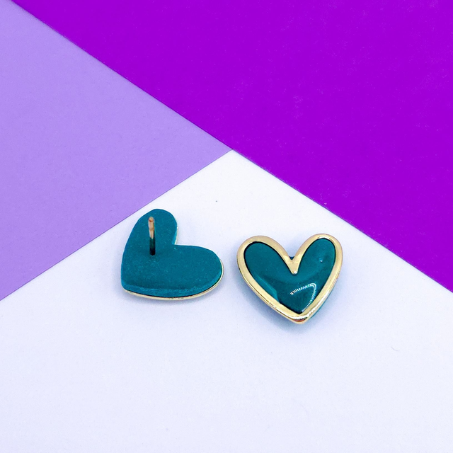 These Emerald Heart studs are handmade using 18ct Gold Plated hearts, my favourite polymer clay, and topped with a layer of resin. They have gold plated studs embedded into the clay and come with silicone backs.